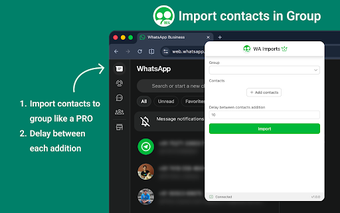 WhatsApp Imports är en kraftfull Chrome-tillägg som möjliggör snabb och enkel import av kontakter till WhatsApp-grupper. Den är särskilt utformad för företag, community-ledare och marknadsförare, vilket gör grupphantering mer effektiv. Med stöd för bulkimport av både enskilda och flera kontakter, kan användare spara tid och minimera risken för fel genom att slippa manuell kopiering och klippning av nummer. Tillägget fungerar sömlöst med WhatsApp Web och erbjuder en enkel och intuitiv användarupplevelse.